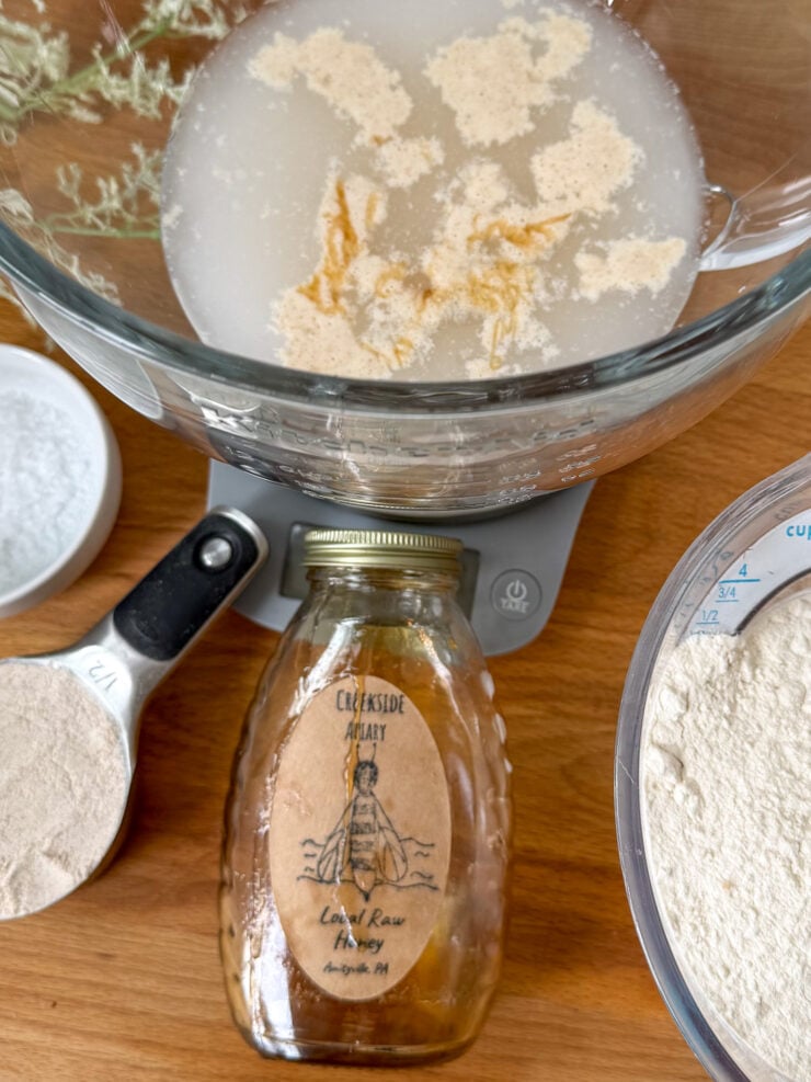 The honey doesn’t make the bread sweet—it simply supports fermentation and balance.